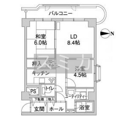 2LDK(55.24m²)└ LD8.4帖 K2帖 和室6帖 洋室4.5帖