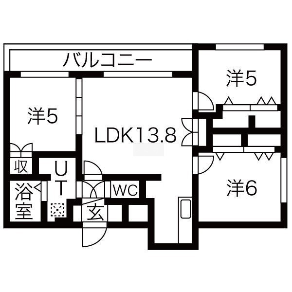 3LDK(63.68m²)└ 5階:LDK13.8帖 / その他:洋室5帖 洋室5帖 洋室6帖