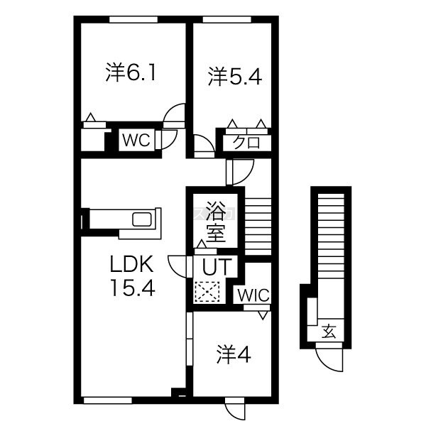 3LDK(73.28m²)└ LDK15.4帖 洋室6.1帖 洋室5.4帖 洋室4帖
