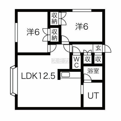 2LDK(51.84m²)└ LDK12.5帖 洋室6帖 洋室6帖