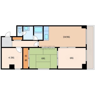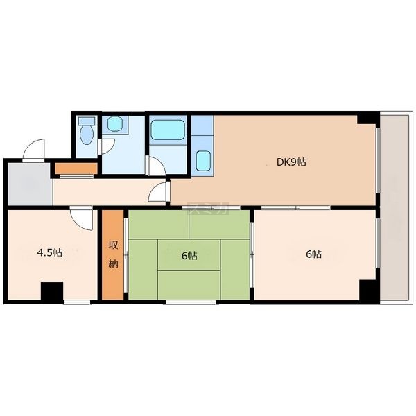 3DK(58m²)└ DK9帖 洋室6帖 和室6帖 洋室4.5帖