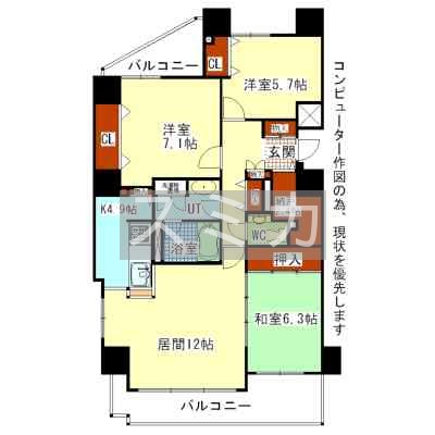 3LDK(80.9m²)└ LD12帖 K4.9帖 洋室7.1帖 和室6帖 洋室5.7帖