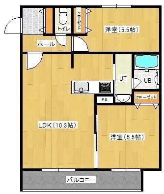 2LDK(50.16m²)└ LDK10.3帖 洋室5.5帖 洋室5.5帖