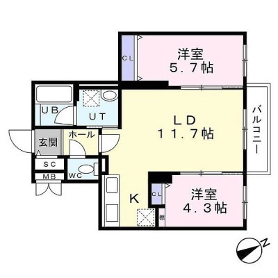 2LDK(54.41m²)