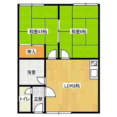 2DK(39.75m²)└ DK8帖 和室4.5帖 和室6帖