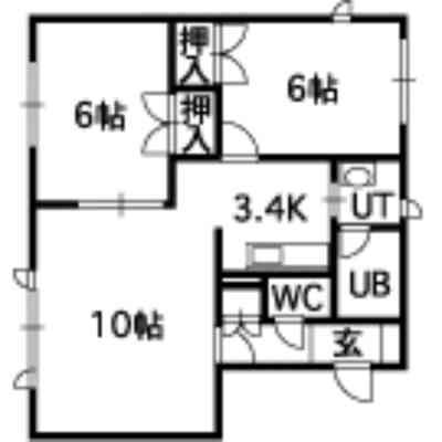 2LDK(54m²)└ 1階:LD10帖 K3.4帖 洋室6帖 洋室6帖