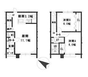 2LDK└ LD11.1帖 K3.2帖 洋室6帖 洋室6帖