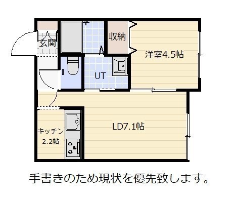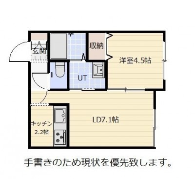 1DK(33m²)└ D7.1帖 K2.2帖 洋室4.5帖
