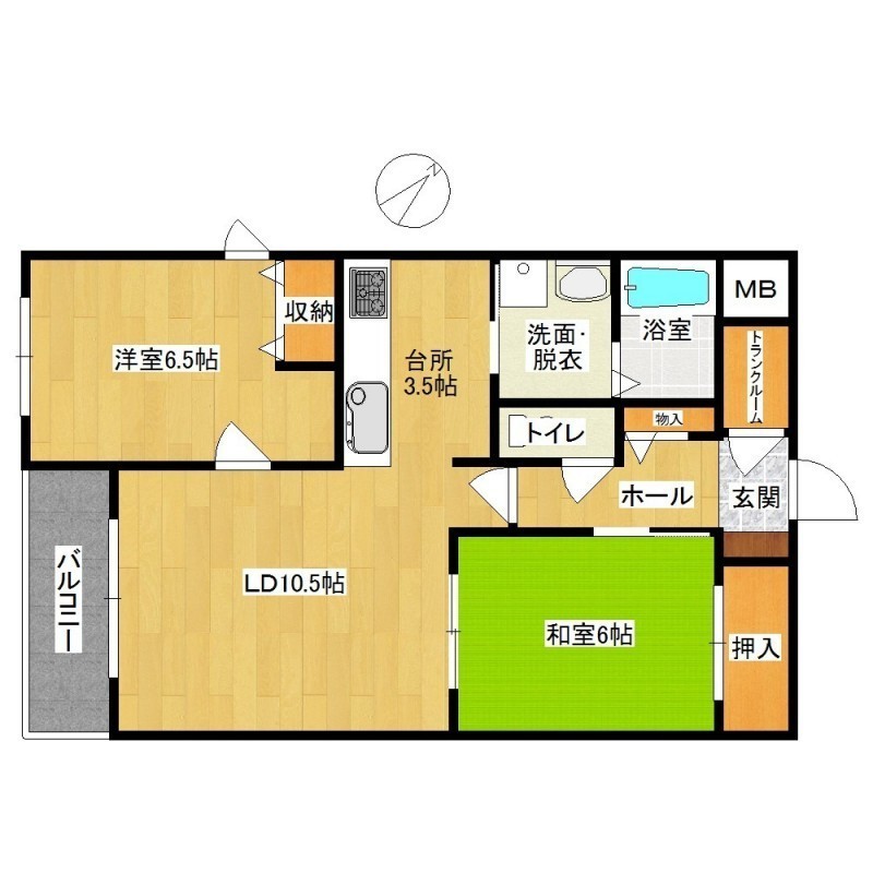 2LDK(62m²)└ 1階:LD10.5帖 K3.5帖 洋室6.5帖 和室6帖