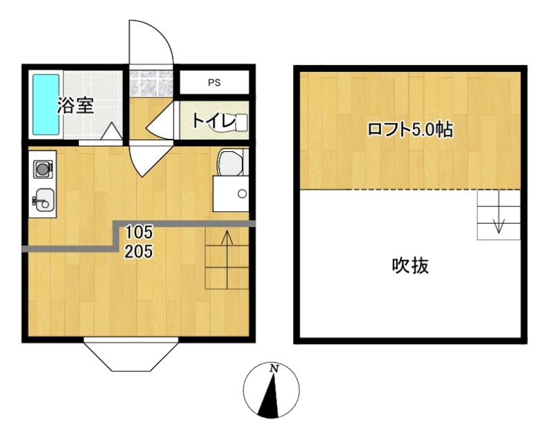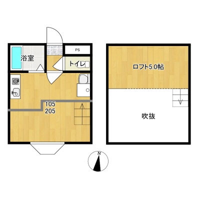 所在階/建物の階建 2階(205) / 地上2階建 総戸数 10戸 主要採光面 南 構造 木造 契約期間 2年間 住宅保険 1万6,000円(2年間) その他費用 毎月の費用 - 水道料:2,800円