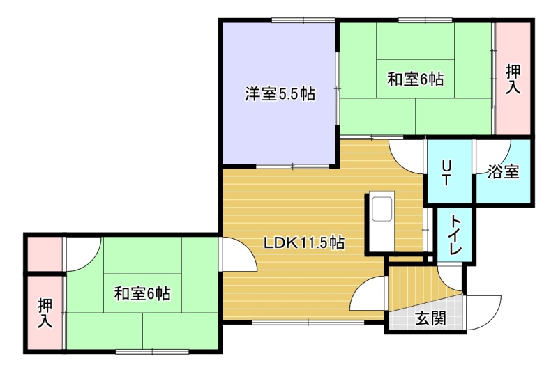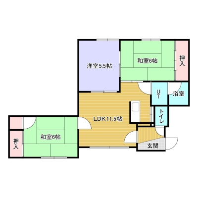 3LDK(58.2m²)└ 和室6帖 和室6帖 洋室5.5帖 LDK11.5帖