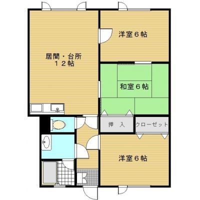 3LDK(63.99m²)└ LDK12帖 洋室6帖 和室6帖 洋室6帖