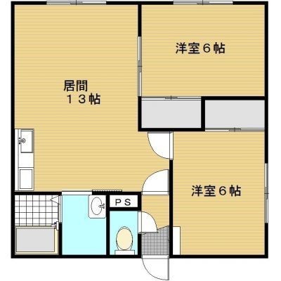 2LDK(51.84m²)└ LDK13帖 洋室6帖 洋室6帖