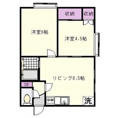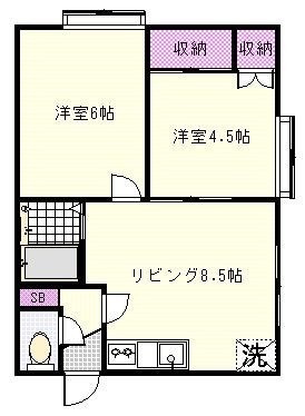 2DK(38.8m²)└ DK8.5帖 洋室6帖 洋室4.5帖