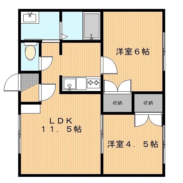 2LDK(44.73m²)└ LDK11.5帖 洋室4.5帖 洋室6帖