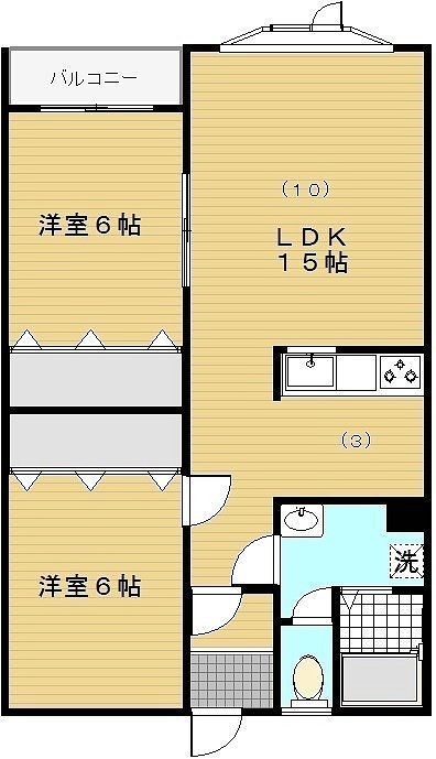 2LDK(59.94m²)└ 2階:LDK15帖 洋室6帖 洋室6帖
