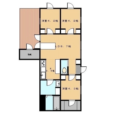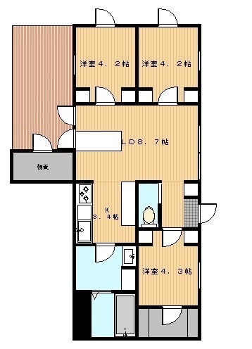 3LDK(58.56m²)└ LDK13帖 洋室4.3帖 洋室4.2帖 洋室4.2帖