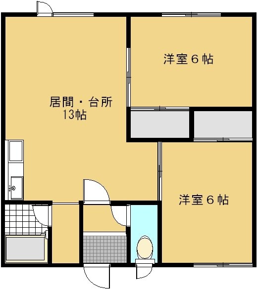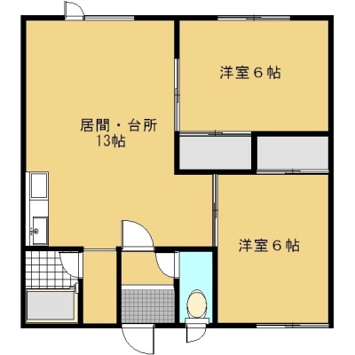 2LDK(52.88m²)└ LDK13帖 洋室6帖 洋室6帖