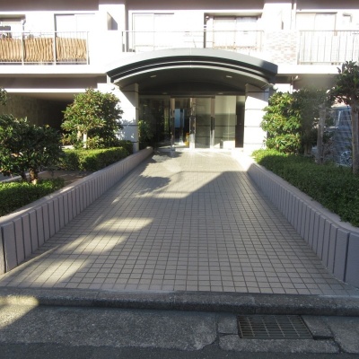 緑豊かなマンション玄関入口が皆様をお迎えします