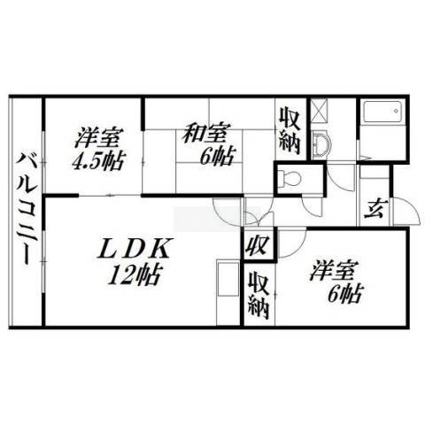 3LDK(64.38m²)└ 和室6帖 洋室6帖 洋室4.5帖 LDK12帖