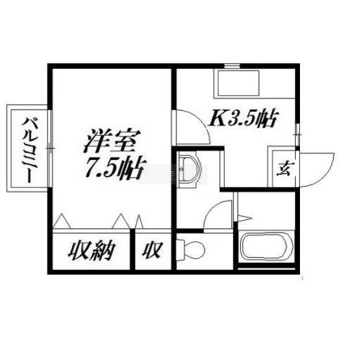 1K(30.3m²)└ 洋室7.5帖 K3.5帖