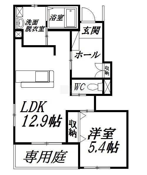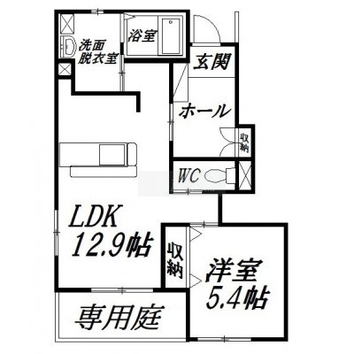 1LDK(45.82m²)└ 洋室5.4帖 LDK12.9帖