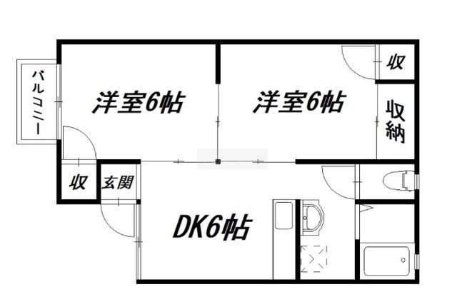 2DK(40.2m²)└ 洋室6帖 洋室6帖 DK6帖