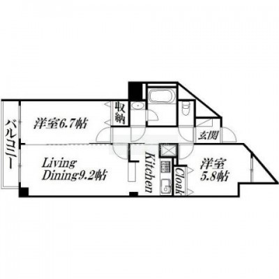 2LDK(58.54m²)└ 洋室6.7帖 洋室5.8帖 LDK9.2帖