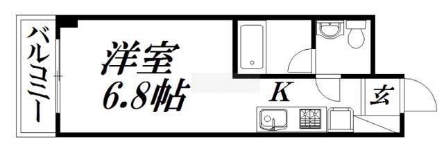 ワンルーム(22.5m²)└ 洋室6.8帖