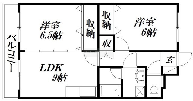 2LDK(51.52m²)└ 洋室6.5帖 洋室6帖 LDK9帖