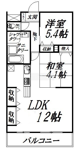 2LDK(53.16m²)└ 和室4.1帖 洋室5.4帖 LDK12帖