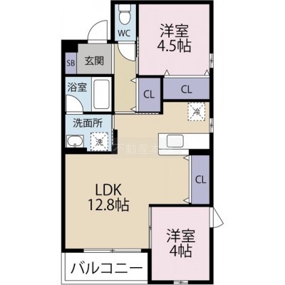 2LDK(49.62m²)└ 洋室4.5帖 洋室4帖 LDK12.8帖