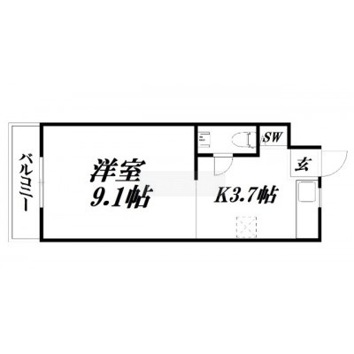 1K(28m²)└ 洋室9.1帖 K3.7帖