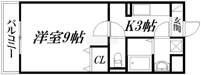 1K(25.9m²)└ 洋室9帖 K3帖