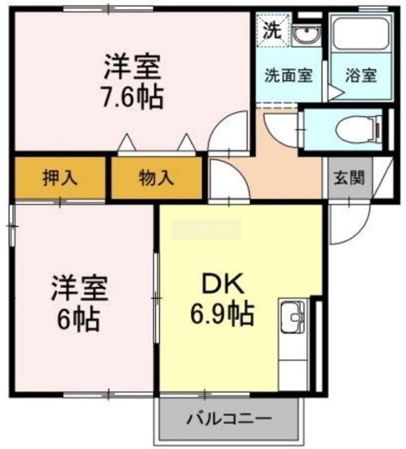 2DK(48.79m²)└ 洋室7.6帖 洋室6帖 DK6.9帖