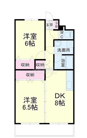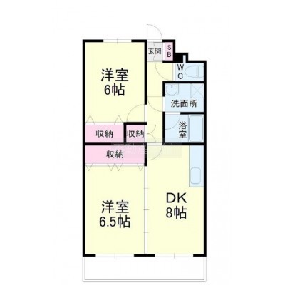 2DK(51.97m²)└ DK8帖 洋室6.5帖 洋室6帖