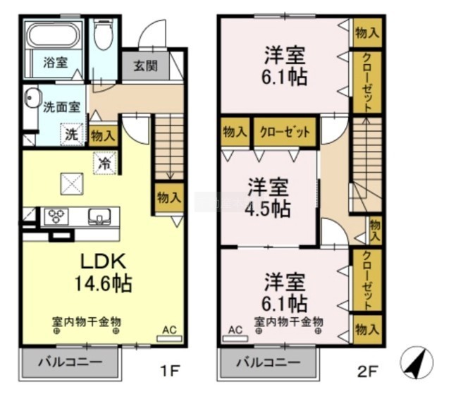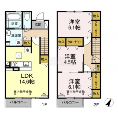 3LDK(81.75m²)└ 洋室6.1帖 洋室4.5帖 洋室6.1帖 LDK14.6帖