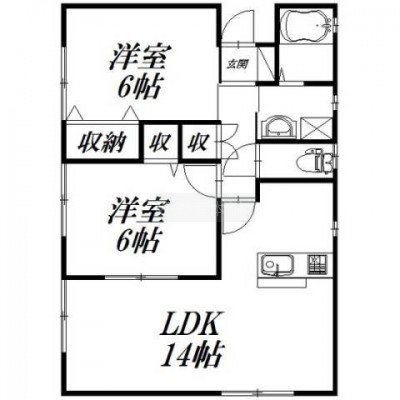 2LDK(59.69m²)└ 洋室6帖 洋室6帖 LDK14帖