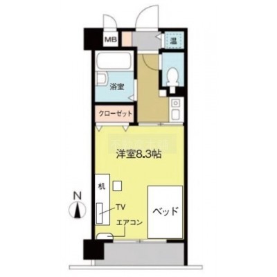 1K(24.58m²)└ 洋室8.3帖 K1帖