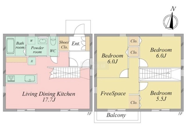 3LDK(91.16m²)└ LDK17.7帖 洋室6帖 洋室6帖 洋室5.5帖 S1帖
