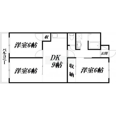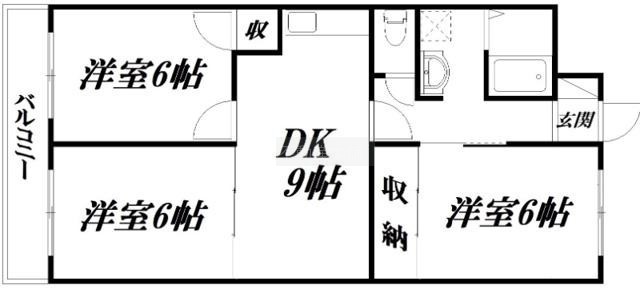 3DK(60.78m²)└ 和室6帖 洋室6帖 洋室6帖 DK9帖