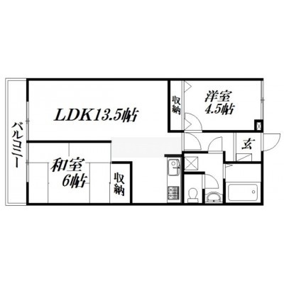 2LDK(62.72m²)└ LDK13.5帖 洋室4.5帖 和室6帖