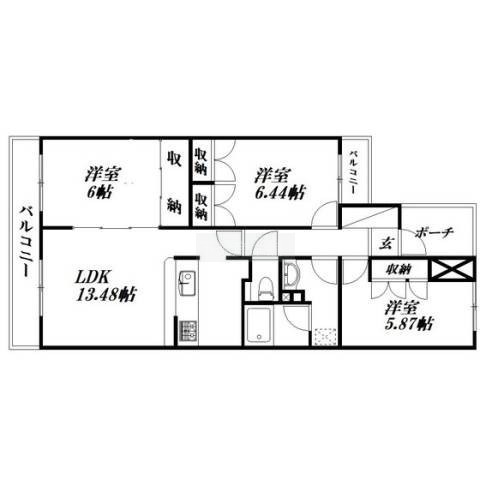3LDK(73.3m²)└ 洋室6帖 洋室6.44帖 洋室5.87帖 LDK13.48帖