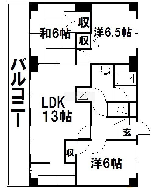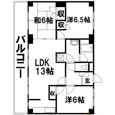 3LDK(70.2m²)└ 和室6帖 洋室6帖 洋室6.5帖 LDK13帖