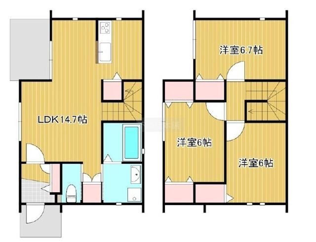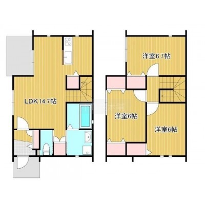 3LDK(81.98m²)└ 洋室6帖 洋室6帖 洋室6.7帖 LDK14.7帖