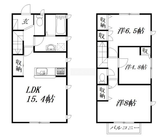 3LDK(82.81m²)└ LDK15.4帖 洋室6.5帖 洋室4.8帖 洋室8帖