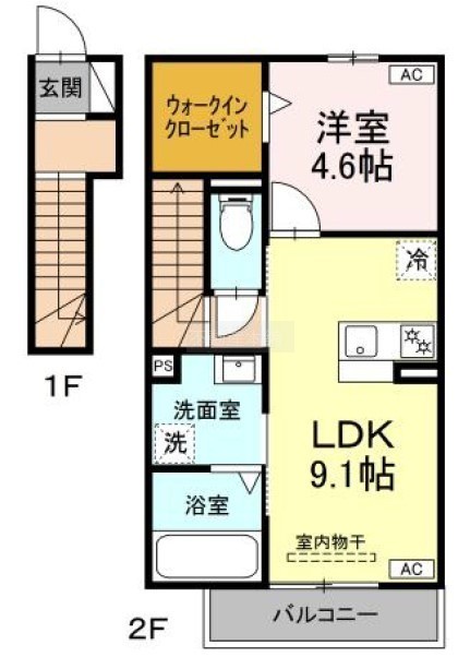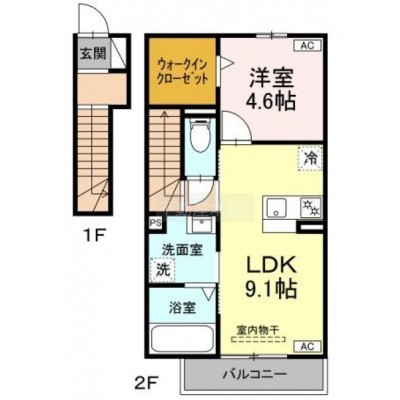 1LDK(42.55m²)└ 洋室4.6帖 LDK9.1帖