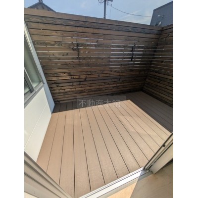 ここに注目!ウッドデッキ付きのオシャレなデザイナーズ新築戸建てが登場☆駐車場は3台付きでエアコンも2台付いてますよ♪