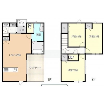 建物の階建 2階(1) / 地上2階建 主要採光面 南 構造 木造 バルコニー - ウッドデッキ・テラス