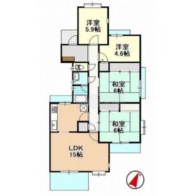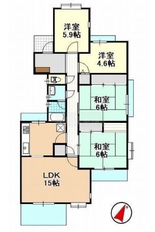 4LDK(86.01m²)└ 和室6帖 和室6帖 洋室5.9帖 洋室4.6帖 LDK15帖